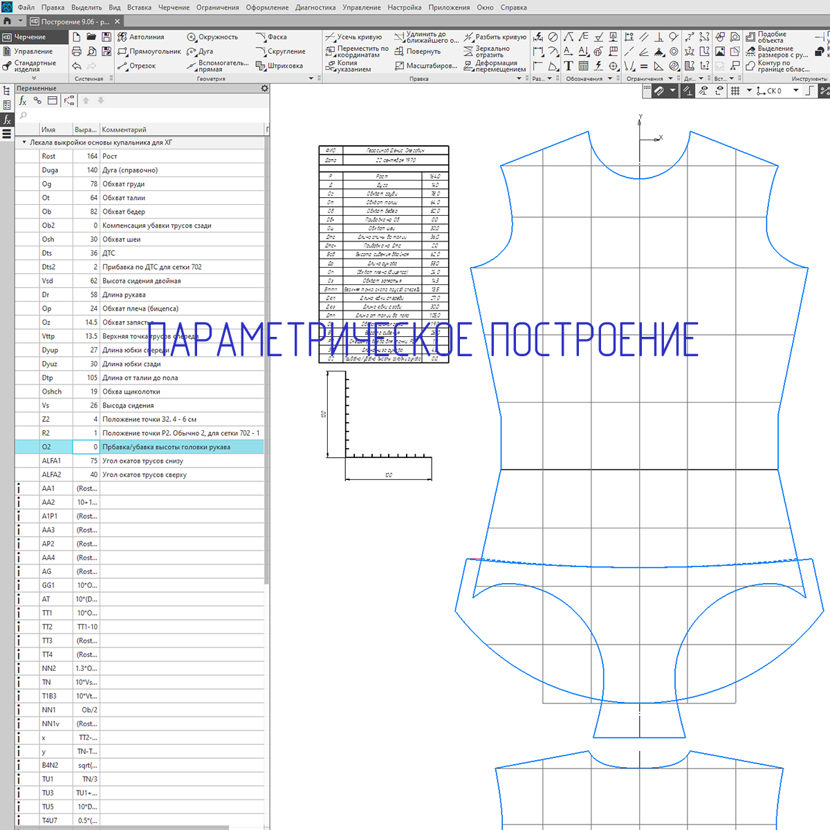 Параметрическое построение выкройки купальника для художественной гимнастики в Компас 3D